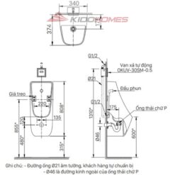 Bản vẽ kỹ thuật của bồn tiểu nam AU-468VAC