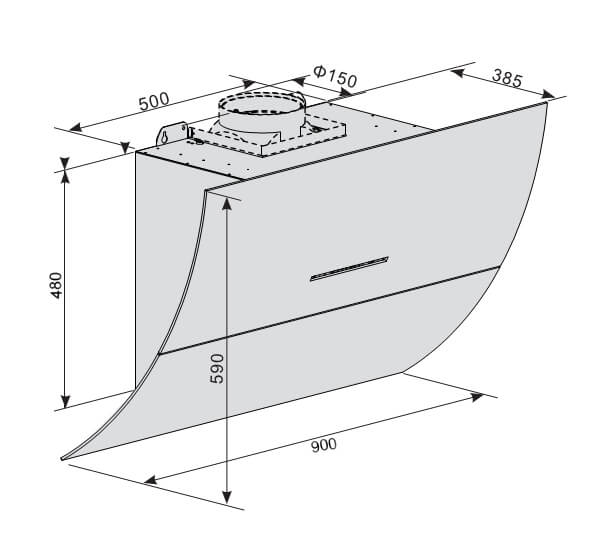 Bản vẽ kỹ thuật của máy hút mùi Lorca TA 6008E-90