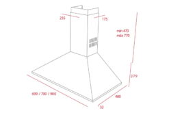 Bản vẽ kỹ thuật của sản phẩm máy hút mùi Teka DBB 70