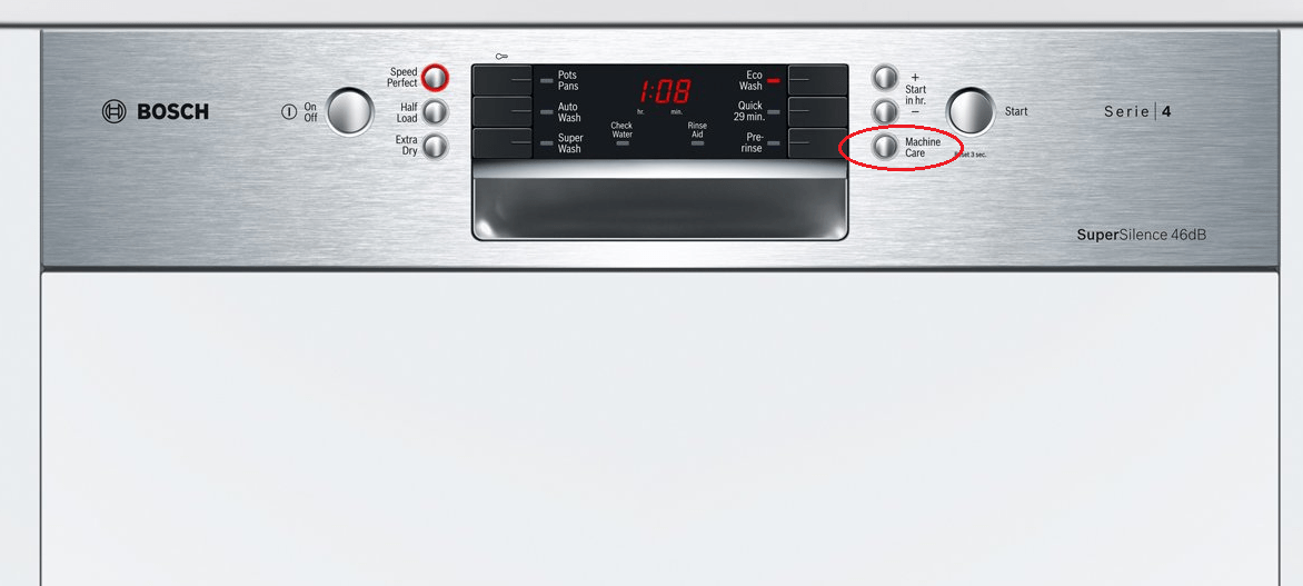 Điều này dễ dàng loại bỏ bằng cách sử dụng chương trình MachineCare để làm sạch khoang rửa của máy. Chỉ cần cho chất tẩy rửa và 1 vài giọt dấm vào máy và khởi động chương trình mà không có bát đĩa xếp bên trong. Đèn báo chương trình nhấp nháy để cảnh báo cho việc vệ sinh tiếp theo.