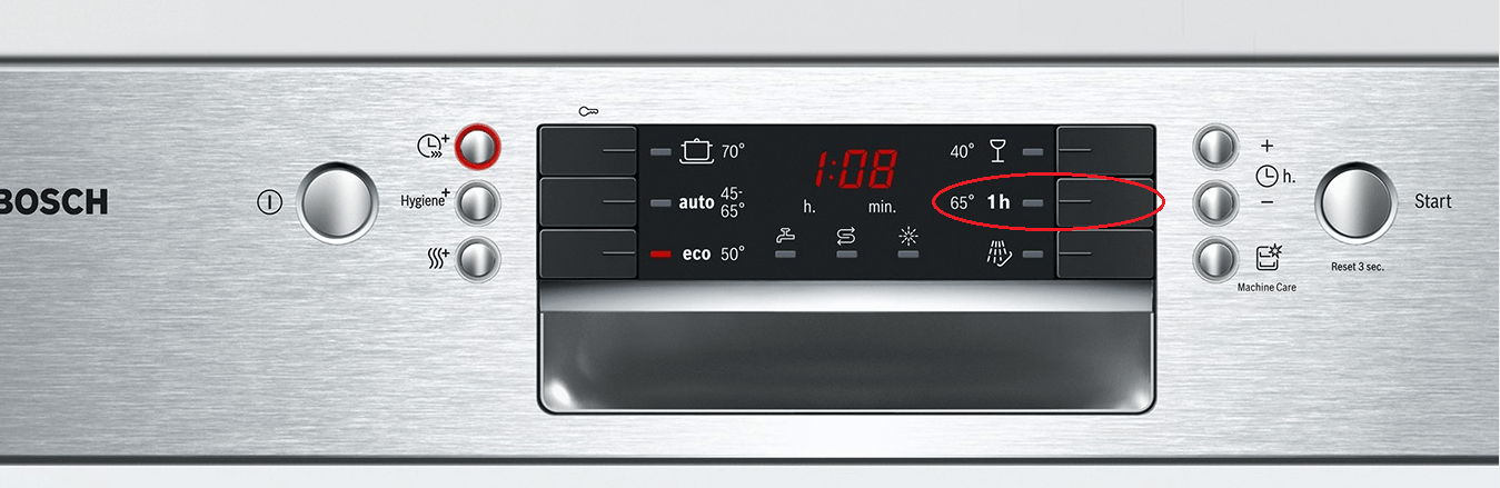 Chương trình 1hour 65°C của Máy rửa bát độc lập BOSCH SMS68II07E|Serie 6 là chương trình rửa nhanh, làm sạch bát đĩa ở nhiệt độ của nước là 65 °C trong thời gian 1 giờ, giảm đáng kể thời gian rửa so với thông thường mà hiệu quả rửa và sấy không khác các chương trình tiêu chuẩn của thương hiệu Bosch.