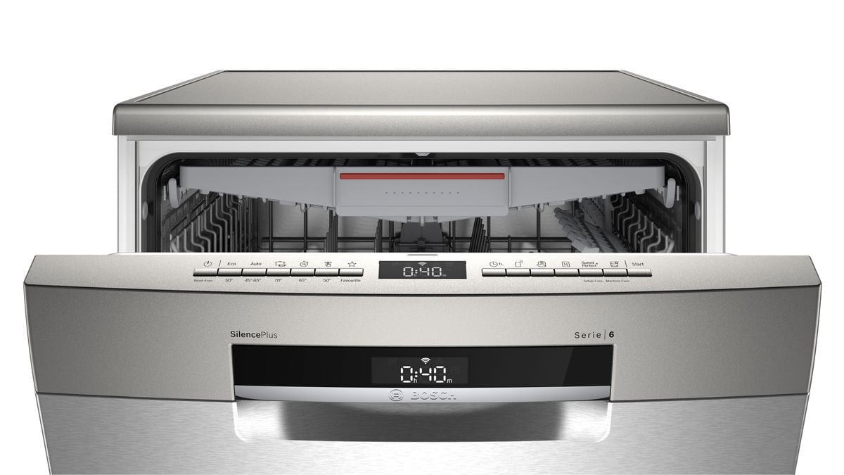 - EfficientDry: Tăng hiệu quả sấy bằng cách mở cửa – Tính năng tiết kiệm năng lượng cùng với phương thức mở cửa giúp máy rửa bát Bosch giảm thiểu năng lượng đồng thời tăng hiệu quả sấy. Công nghệ này giảm nhiệt độ quá trình xả cuối đồng thời mở cửa chu trình sấy đồng thời quạt thổi hơi ẩm ra khỏi máy giúp tiết kiệm năng lượng.