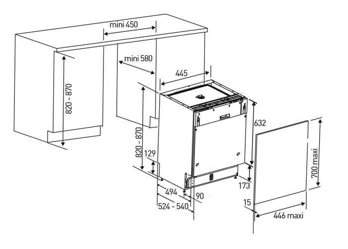 Bản vẽ kỹ thuật của máy rửa bát Bosch SPS25CI03E