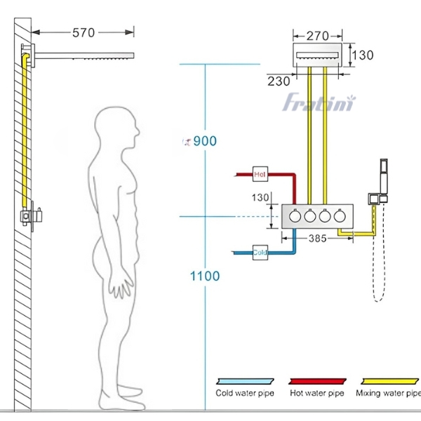 Thông số kỹ thuật sen cây âm tường Fratini Milano Flowing Waterfall model 39050608