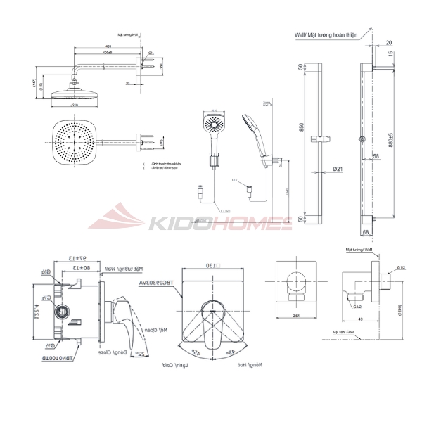 Bộ sen tắm âm tường TOTO TBG04304BA/TBN01001B/TBW02013B/TBW02003A/TBW02006V/TBW07018A