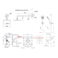 Bản vẽ kỹ thuật của bộ sen tắm âm tường TOTO TBG04304BA/TBN01001B/TBW02013B/TBW08001A/TBW2005V