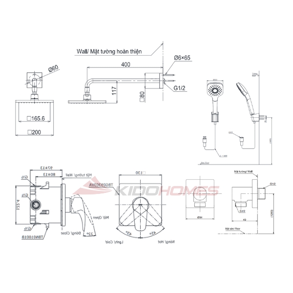 - Loại sản phẩm: Bộ sen tắm âm tường nóng lạnh