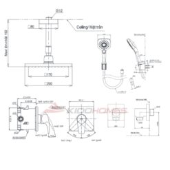 Bản vẽ kỹ thuật của bộ sen tắm âm tường TOTO TBG04304BA/TBN01001B/TBW02013B/TBW08001A1/TBW2006V