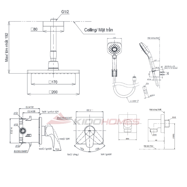 - Loại sản phẩm: Bộ sen tắm âm tường nóng lạnh