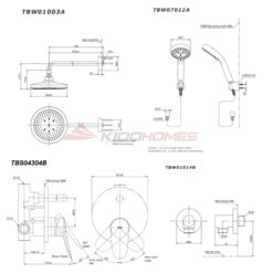 Thông số kỹ thuật của bộ sen tắm âm tường TOTO TBS04304B/TBW01014/TBW01003A/TBW07012A