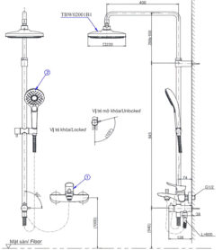 Bản vẽ kỹ thuật của Bộ sen cây tắm kết hợp TOTO TBW02001BA/TBG02302VA/TBW02006V
