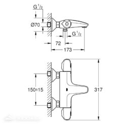 Bản vẽ kỹ thuật của bộ sen tắm nhiệt độ Grohe 34155003/27799001