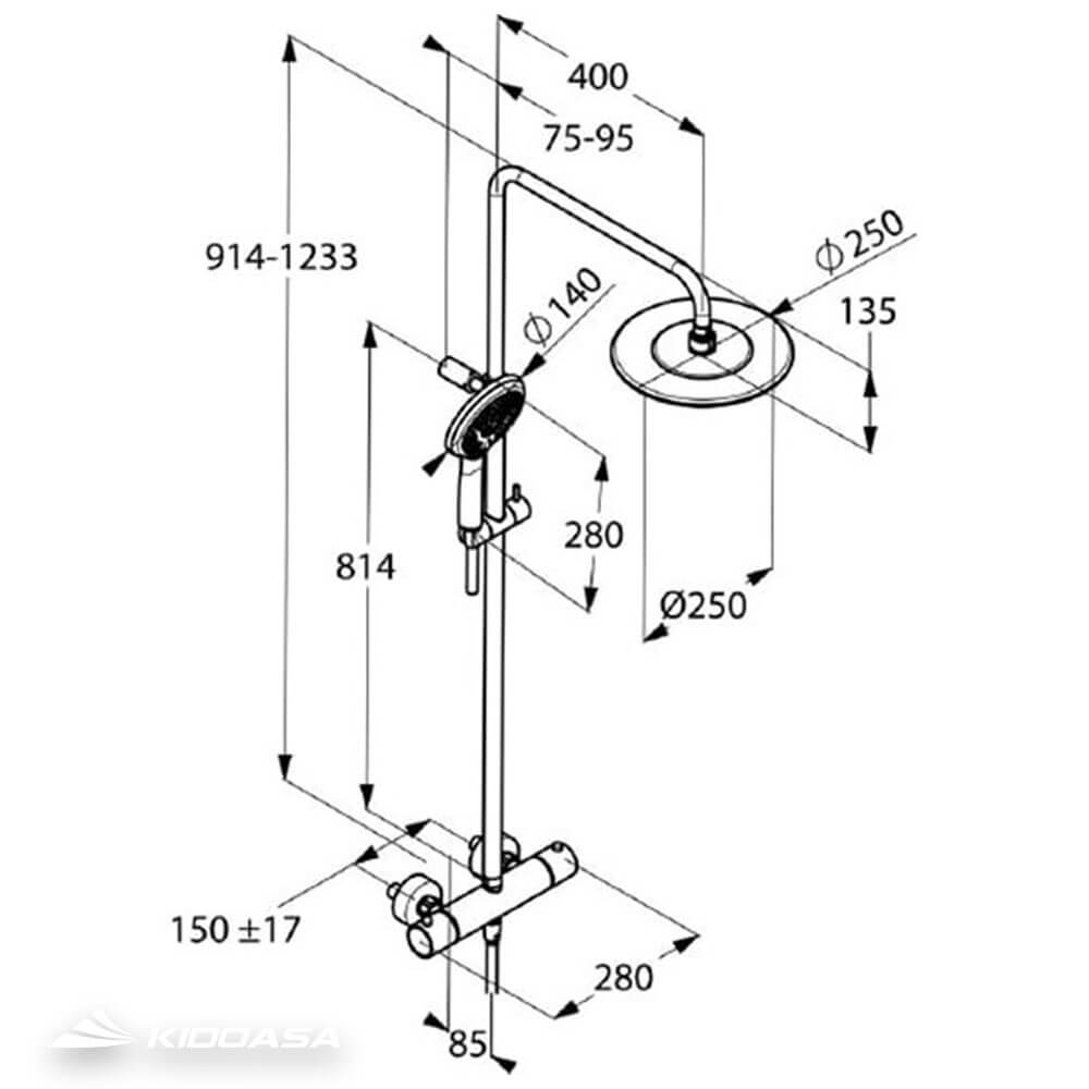 Bản vẽ kĩ thuật Sen cây tắm nhiệt độ KLUDI Freshline 6709205-00 – Made in Germany