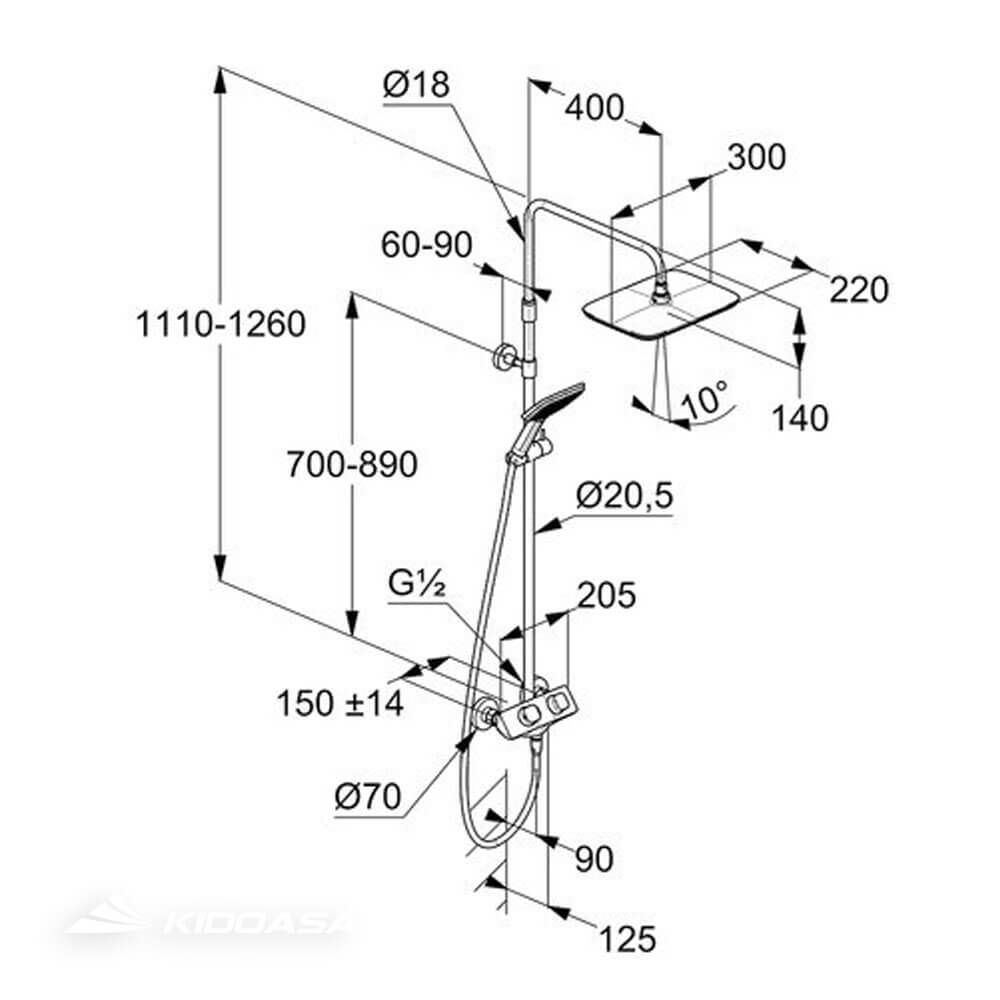 Thông số kĩ thuật sen cây nhiệt độ KLUDI COCKPIT 8005005-00
