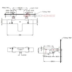Bản vẽ kỹ thuật của sen tắm điều chỉnh nhiệt độ TOTO TBV01402BA/TBW01010A