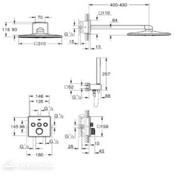 Bản vẽ kỹ thuật của sen tắm âm tường Grohe SmartControl 34706000