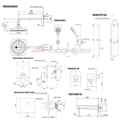 BẢN VẼ KỸ THUẬT CỦA BỘ SEN TẮM ÂM TƯỜNG TOTO TBG04304BA/TBN01001B/TBV02103B/TBN01102B/TBW02013B/TBW02004A/TBW2006V/TBW07018A/TBG10001B