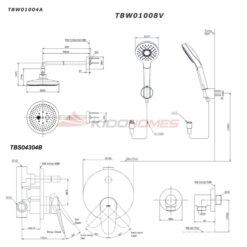 Bộ sen tắm âm tường TOTO TBS04304B/TBW01014/TBW01004A/TBW01008A
