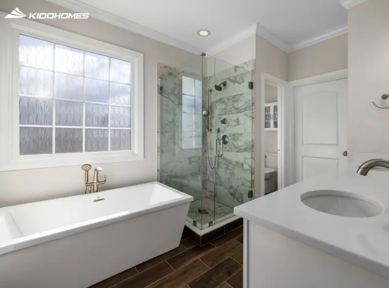 Thiết kế khung kính cổ điển kết hợp ánh sáng tự nhiên không chỉ nâng tầm thẩm mỹ mà còn tạo nên trải nghiệm sống cao cấp hơn. Đây là lựa chọn phù hợp cho những ai muốn sở hữu một phòng tắm mang tính cá nhân, sang trọng và bền vững theo thời gian.