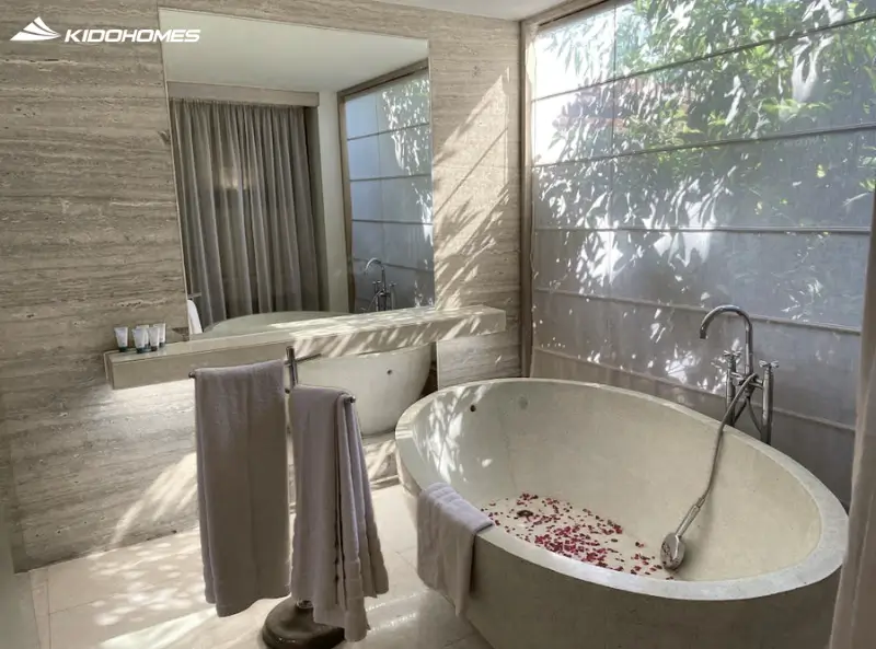 • Mang lại cảm giác sống động mà ánh sáng nhân tạo rất khó thay thế. Ánh sáng đèn có thể đủ sáng, nhưng không tạo được độ mềm, độ sâu và cảm xúc như ánh sáng ban ngày. Một tia nắng chiếu vào bồn tắm, một vệt sáng trên nền đá, hay ánh sáng phản lên gương vào buổi sáng đều tạo nên cảm giác rất khác. Không gian như có hơi thở riêng.