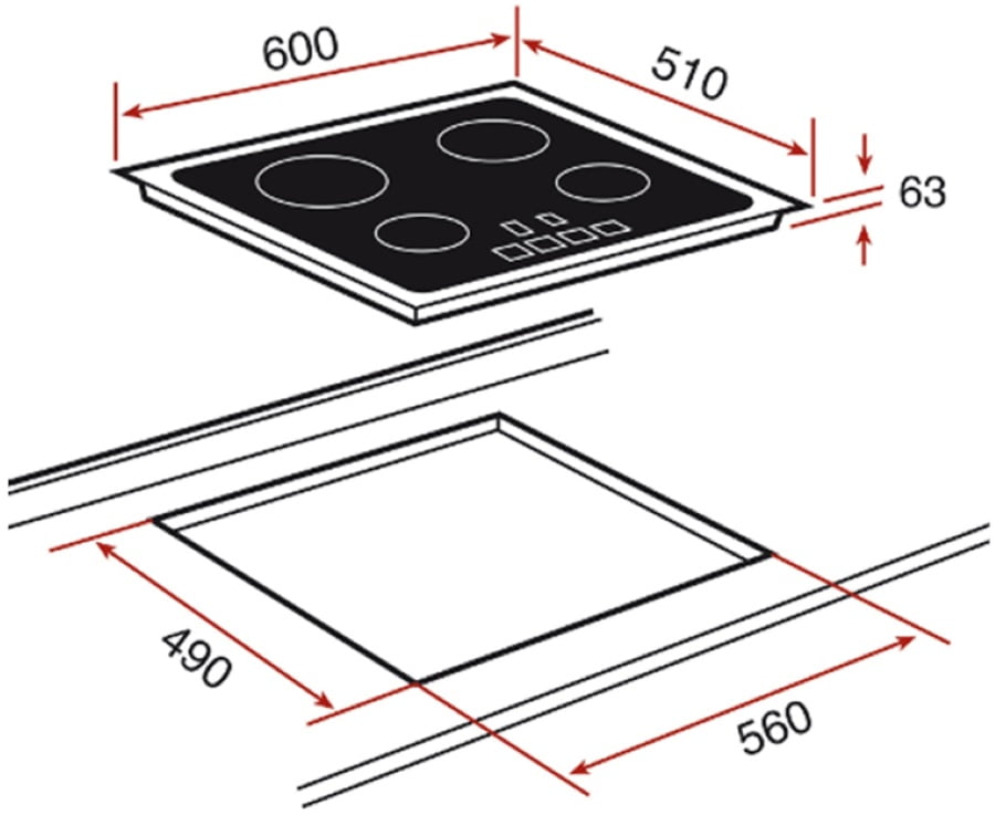 Bản vẽ kĩ thuật Bếp điện 4 vùng nấu Teka TT 6415