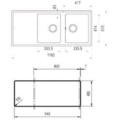 - Kích thước bề mặt: 1140×480 mm