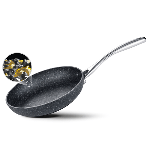 – Mặt trên cùng của chảo từ Elo làm từ chất liệu vân đá Granit có cấu trúc vân đá làm tăng diện tích bề mặt, dầu chiên giữ tốt hơn và phân bố đều hơn trên toàn bộ bề mặt chảo.