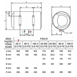 Thông số ký thuật bình nóng lạnh Ariston Pro-R 50 V