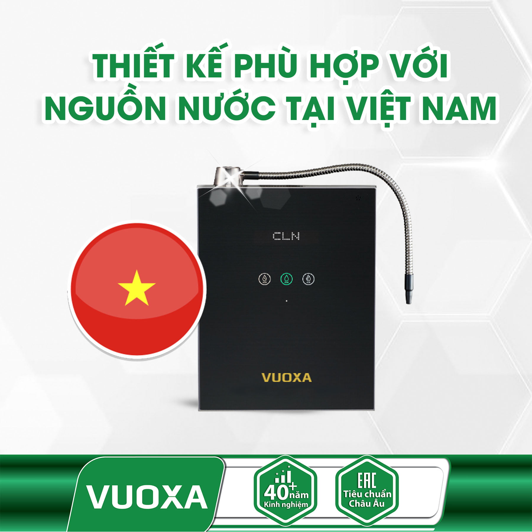 - Máy lọc nước ion kiềm giàu Hydro Vuoxa i5000 sử dụng Bộ điện phân có hiệu suất cao
