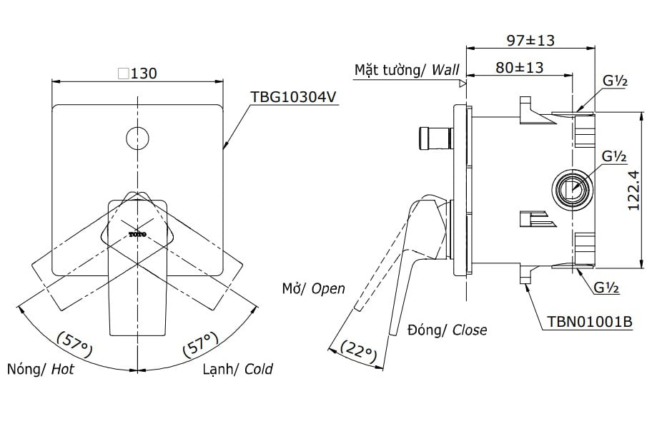 - TBG10304VA: Van điều chỉnh nước nóng lạnh kèm nút chuyển hướng