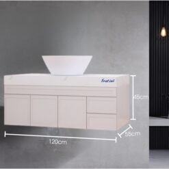- Tủ chậu treo: Kích thước: Rộng 120 x Cao 45 x Sâu 55 (cm)