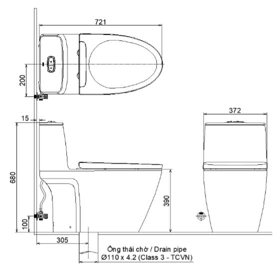 - Tên bàn cầu Bàn cầu một khối, nắp điện tử