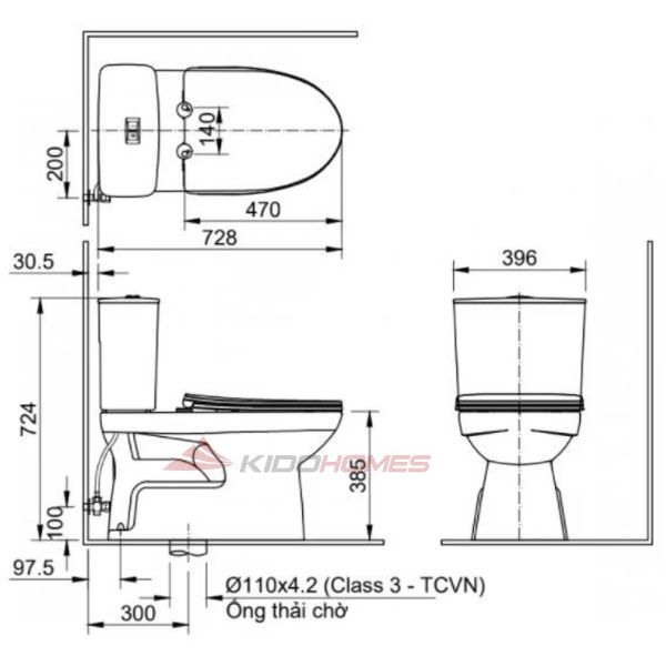 - Loại bồn cầu: Hai khối