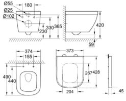 Thông số kỹ thuật bồn cầu treo tường Grohe 3920600H/39458000/38722001/38844000