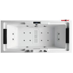 - Bồn tắm có vòi sen, các nút điều chỉnh cường độ massage, nhiệt độ nước được lắp đặt ngay trên thành bồn tắm. Khe xả nước vào được bố trí ngay bên dưới các linh kiện trên. Tất cả đều được mạ crom sáng bóng, nổi bật trên nền trắng của thành bồn tắm được làm từ vật liệu ABS.