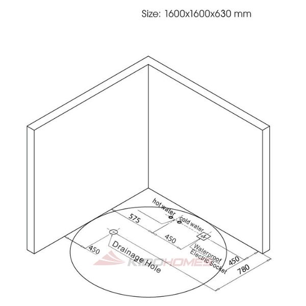 - Kích thước: 1600 x 1600 x 630 mm