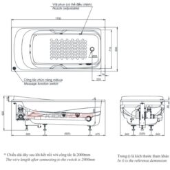 Thông tin kỹ thuật về bồn tắm Massage PPYK1760ZRPNE#P/TVBF412/DB505R-2B