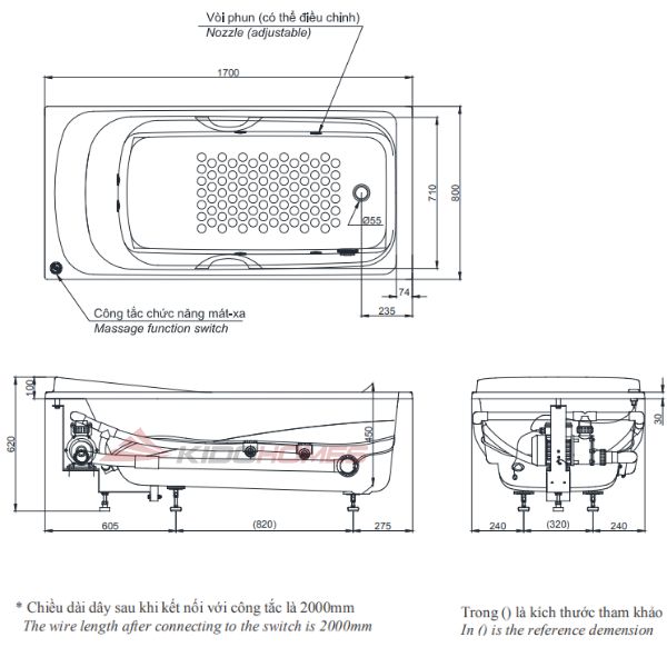 - Tính năng: Mát-xa xoáy nước không có tay vịn
