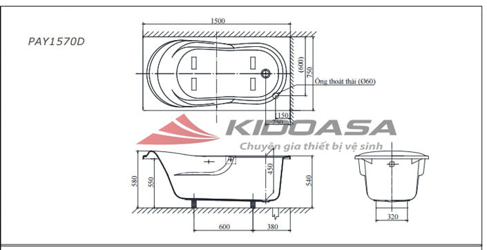 Thông số kĩ thuật bồn tắm nhựa TOTO PAY1570D#W/DB501R-2B/TVBF412