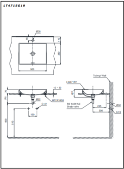 Ảnh sản phẩm chậu lavabo đặt trên bàn LT4715G19Bản vẽ kỹ thuật chậu Linear Ceram đặt trên bàn LT4715G19