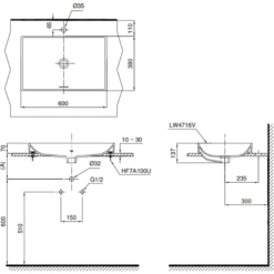 Bản vẽ kỹ thuật của chậu Lavabo đặt bàn LT4716G17