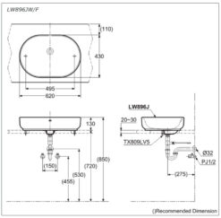 Thông số kỹ thuật chậu rửa lavabo đặt bàn TOTO LW896JW/F#W