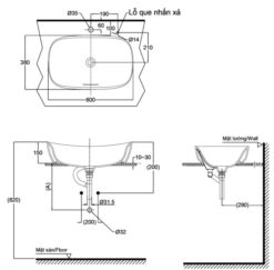 Bản vẽ kỹ thuật lavabo đặt bàn đá cẩm thạch nhân tạo cao cấp PJS07WE#MW
