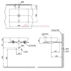 Bản vẽ kỹ thuật của chậu đặt trên bàn TOTO LT1735#MBL