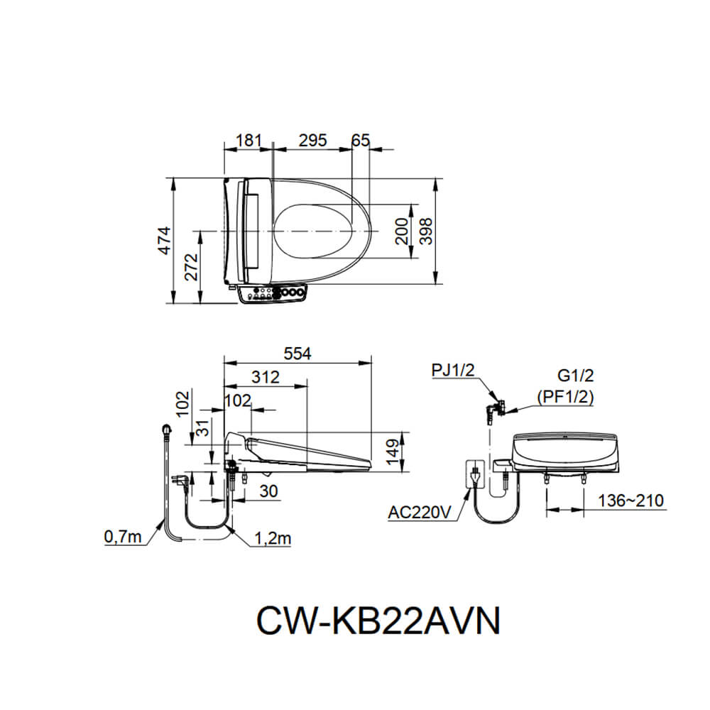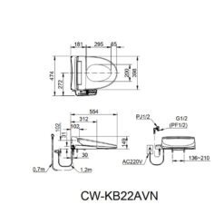 Bản vẽ kỹ thuật của nắp rửa điện tử INAX CW-KB22AVN