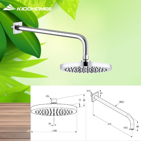 - Đầu sen trần Ø200mm lý tưởng cho phòng tắm vừa – đảm bảo trải nghiệm phun mưa thư giãn