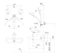 Bản vẽ kỹ thuật của Sen tắm inax BFV-4103S