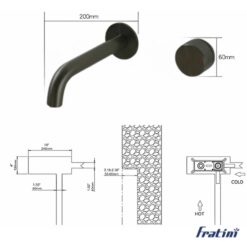 Bản vẽ kỹ thuật của vòi âm tường nóng lạnh Fratini Venice Black model 39041602BK