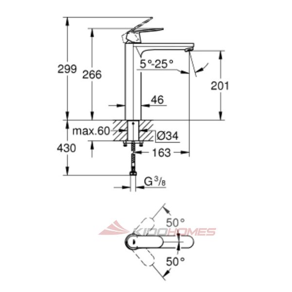 Bản vẽ kỹ thuật của vòi chậu nóng lạnh Grohe 23921000 Eurosmart Cosmopolitan XL