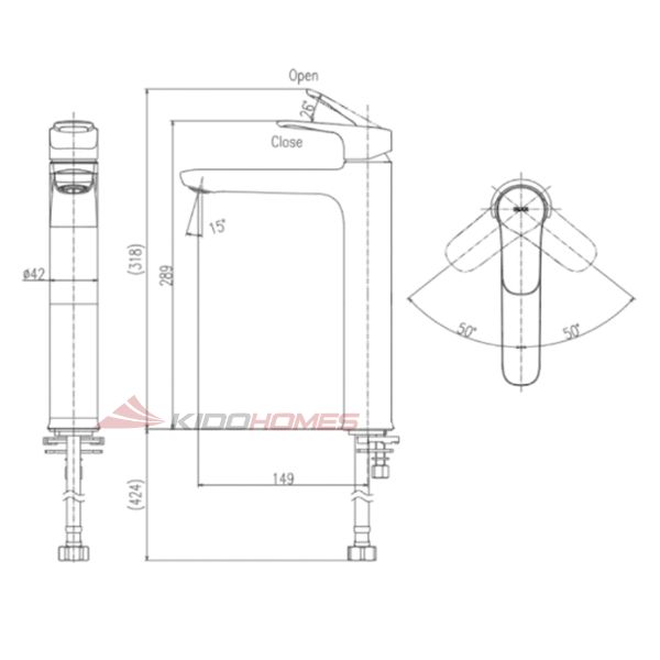 - Kích thước thân vòi: Dài 289 mm × Rộng 149 mm